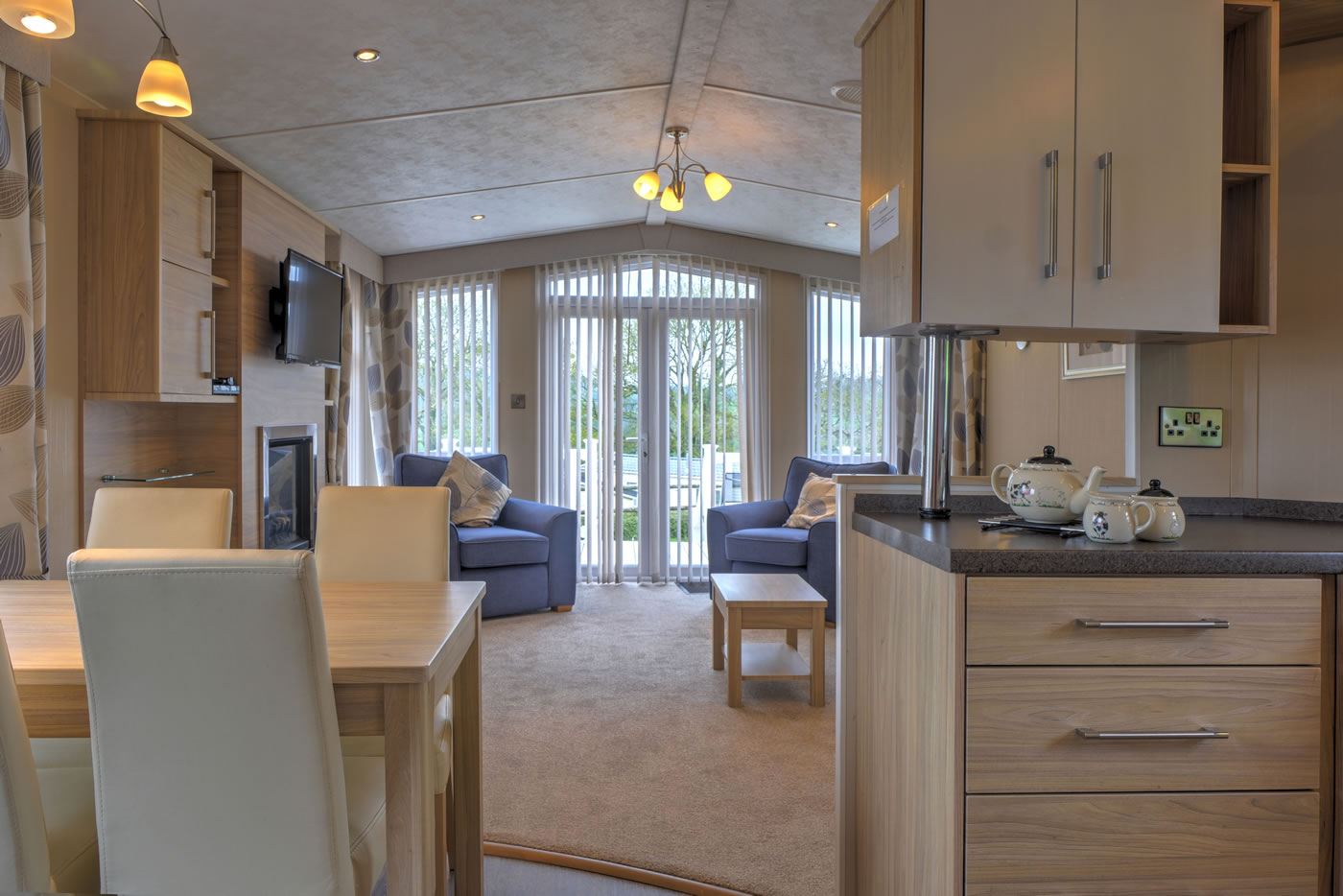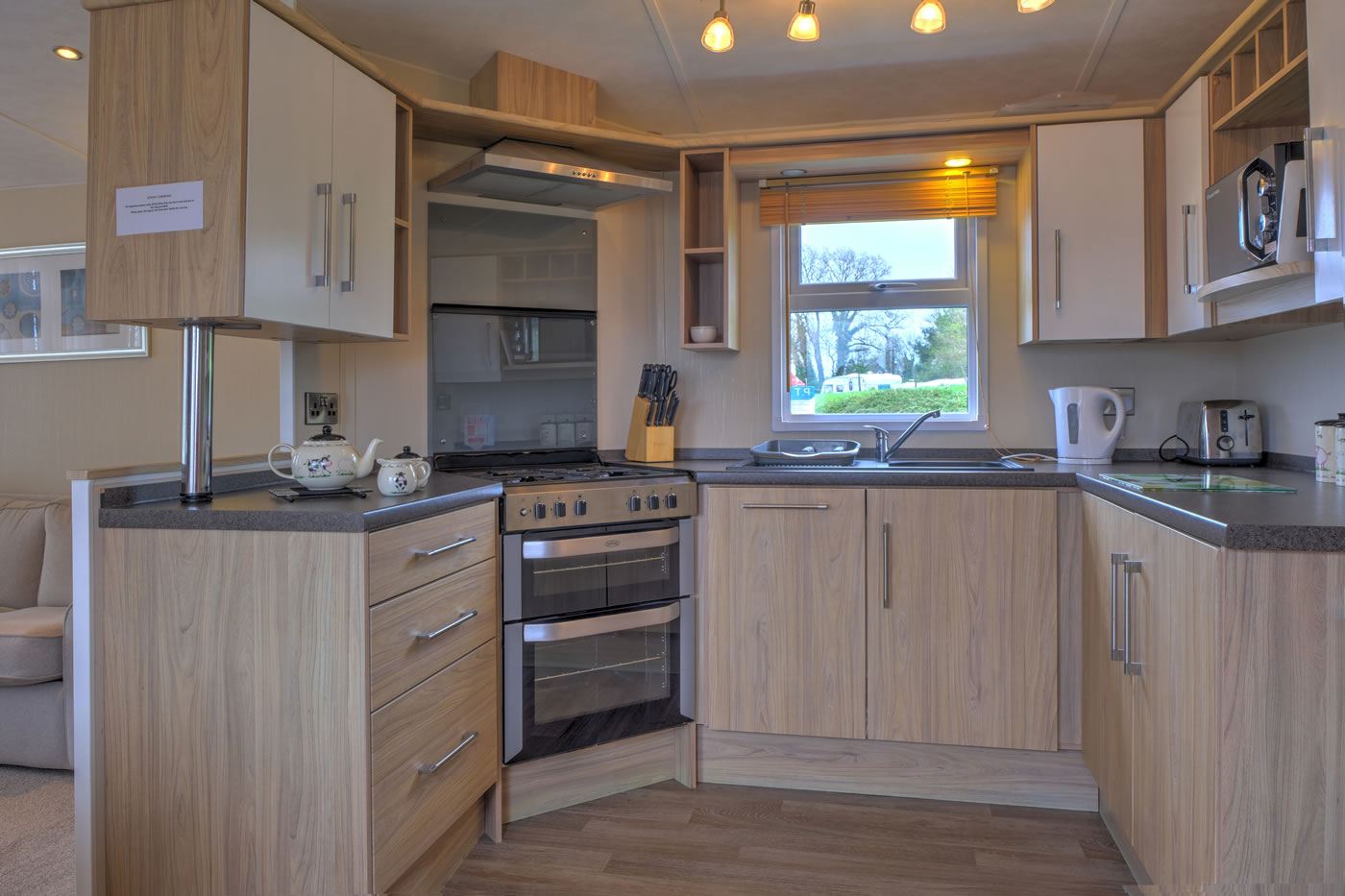 NB. All caravans are fully equiped and have full size fridges, microwaves and calor gas cookers. All linen is supplied except for towels and tea towels. A make up double bed is in the lounge area. TV’s are included in all caravans with freesat.